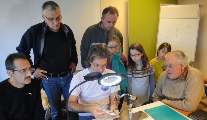 Chez les jeunes, Philippe leur a proposé certains montages dont celui de « l’escargot » qui utilise seulement deux matériaux et qui reste à la portée de tout débutant.